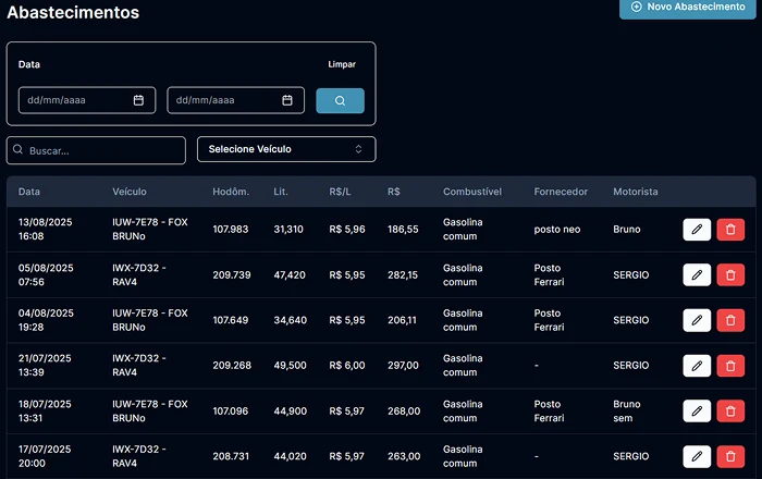 Monitore custos de combustível e evite desperdícios com relatórios detalhados.